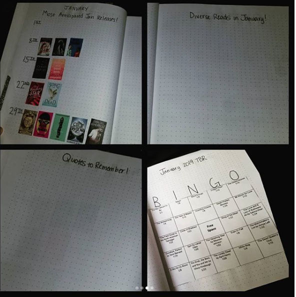 So, a little background… I used to have a lifestyle bullet journal, but when Hurricane Harvey happened, it was in my car, which as most of you know, got flooded. So, I lost all that work I had done. (From January-August) I was devestated. That thing took a lot of work. So, I just gave it up. But I still wanted to do something like it, so I started looking around and I noticed that there were “reading journals.” I began looking at other spreads, and the next year (2018) I started my own. This year is the first time I will have one the full year so I’m excited!