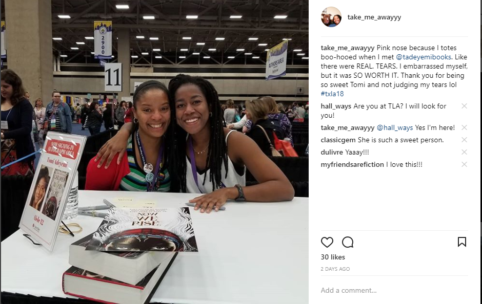 I FINALLY met Tomi and I DIEEEEEEE. I had REAL. TEARS. It was super embarrassing and her editor took a pic of me, but you know what, IT WAS WORTH IT. And what she signed in it…. Man, y’all wouldn’t understand. #ForUS