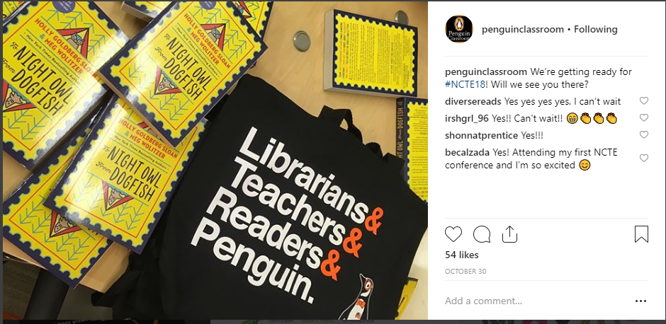 8. Super cute tote from Penguin Classrooms: I love this freaking tote and I still have a couple days before NCTE, but I NEED to get this in my hands. It has Librarians (me) and my favorite animals on it. This tote is so me and I NEED IT. You can find more info about it here!