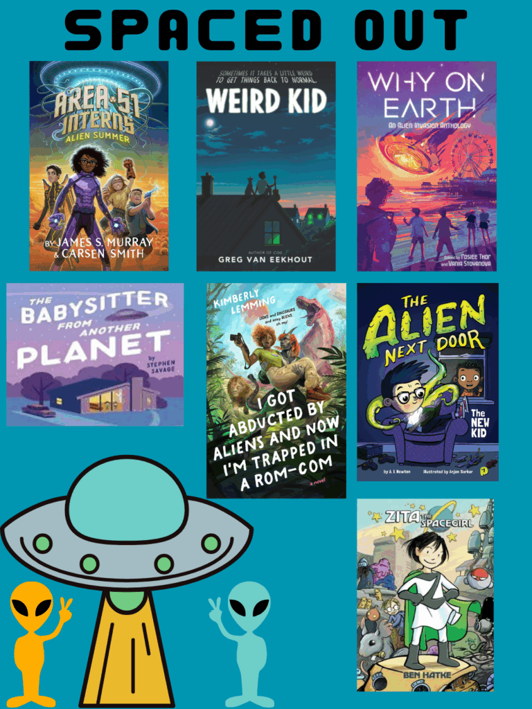 1 Picture Book, 4 MGs (1 that’s a Graphic Novel), 1 Adult, and 1 YA Anthology! I chose these because I know there are some really popular alien books out there for all ages, but these are some favorites and some that might not be as known!