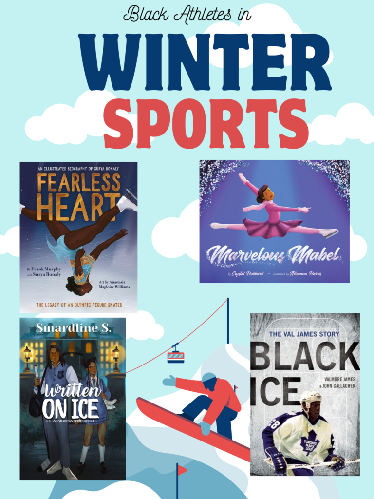 Fearless Heart is a picture book bio of Surya Bonaly, the figure skater who back flipped on the ice at the Olympics. Marvelous Mabel is another picture book bio about Mabel Fairbanks who was the first Black athlete inducted into the US Figure Skating Hall of Fame. Although she was never an Olympian because systemic racism and segregation barred her from getting the rink time to qualify. Written on Ice is about a hockey player and figure skater trying to solve a mystery together. And Black Ice is an adult bio about the first Black NHL player back in 1982 when he played with the Buffalo Sabres.
