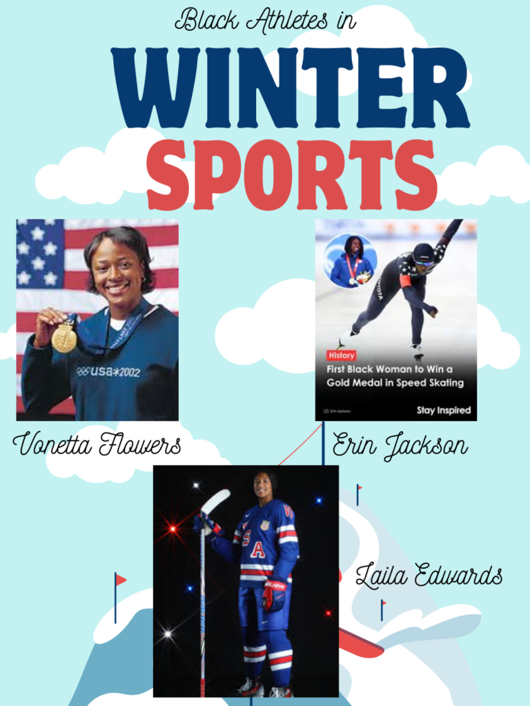 Since it IS Black History Month, I wanted to talk about those IRL athletes that represented us in Winter sports. With all the stigma surrounding Black athletes in winter sports because of racism, and the winter sports places (arenas, rinks, slopes) being “all white spaces,” I wanted to make sure to shine some light on those that I hope to see in books one day. Vonetta Flowers was an American bobsledder. She became the first Black woman to win a gold medal in the Winter Olympics. Erin Jackson is a speed skater and Olympic gold medalist. Jackson is the first Black woman to win a gold in a Winter Olympic individual sport. She is headed back to the Olympics this year. And of course there’s Laila Edwards. She is a college hockey player who is set to be the first Black woman to represent the US in Olympic hockey. I’m so proud of them, like I’m their mom lol I can’t wait to cheer them on!